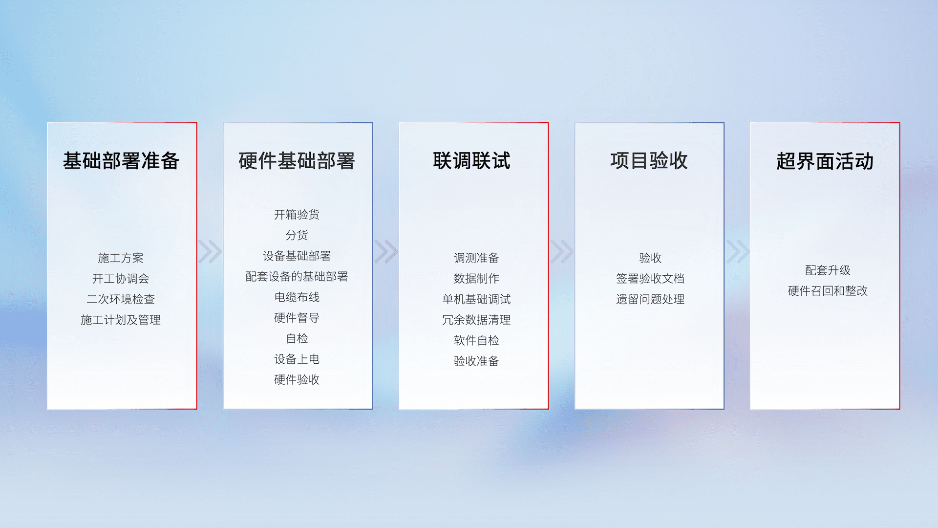 从基础部署准备、、、、硬件基础部署、、联调联试、、项目验收、、、越界面活动的全过程可追溯,,保证施工质量和进度。。。。